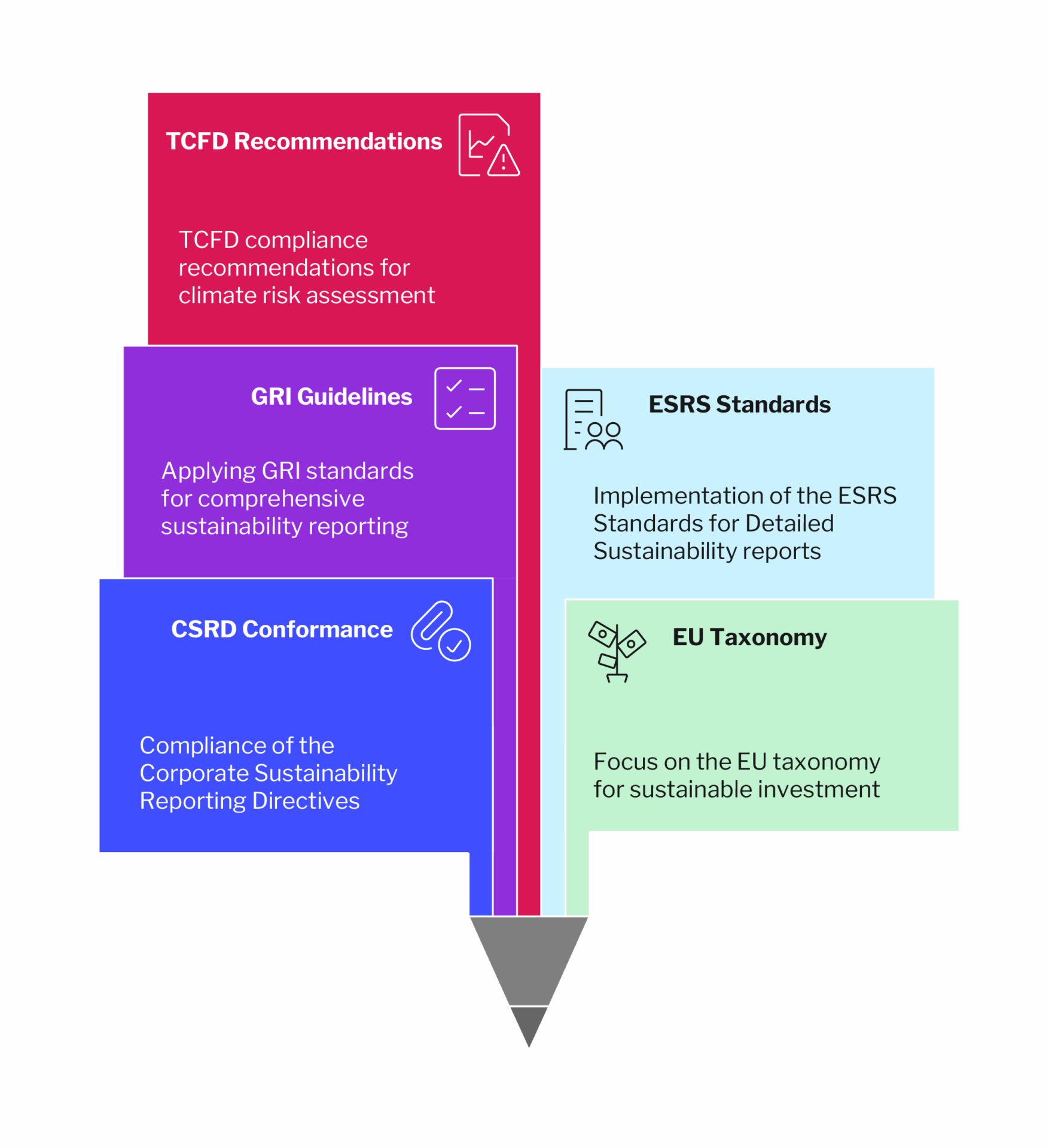 - Legal certainty through compliance with current standards (e.g. CSRD, EU taxonomy)Operational efficiency.