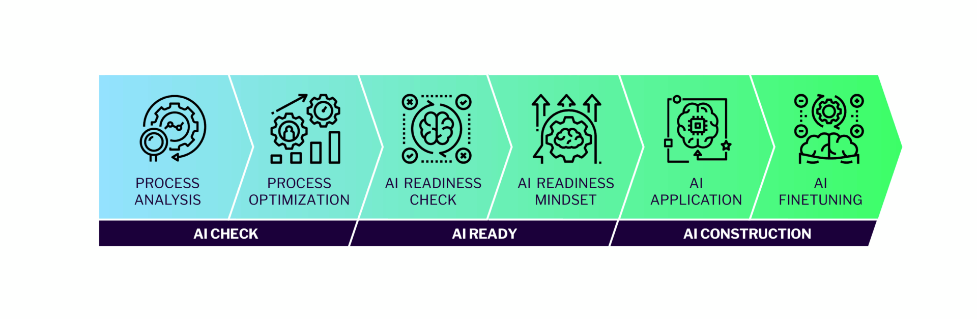 - Automation and efficiency: By analyzing your business processes with our AI check, we identify potential added value from efficiency gains and automation opportunities.