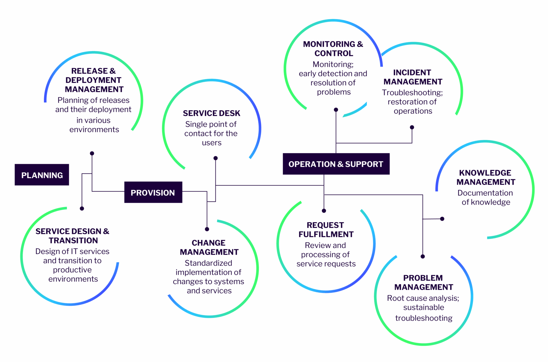 We ensure the stable operation of your IT systems, applications and service processes in accordance with the ITIL standard.